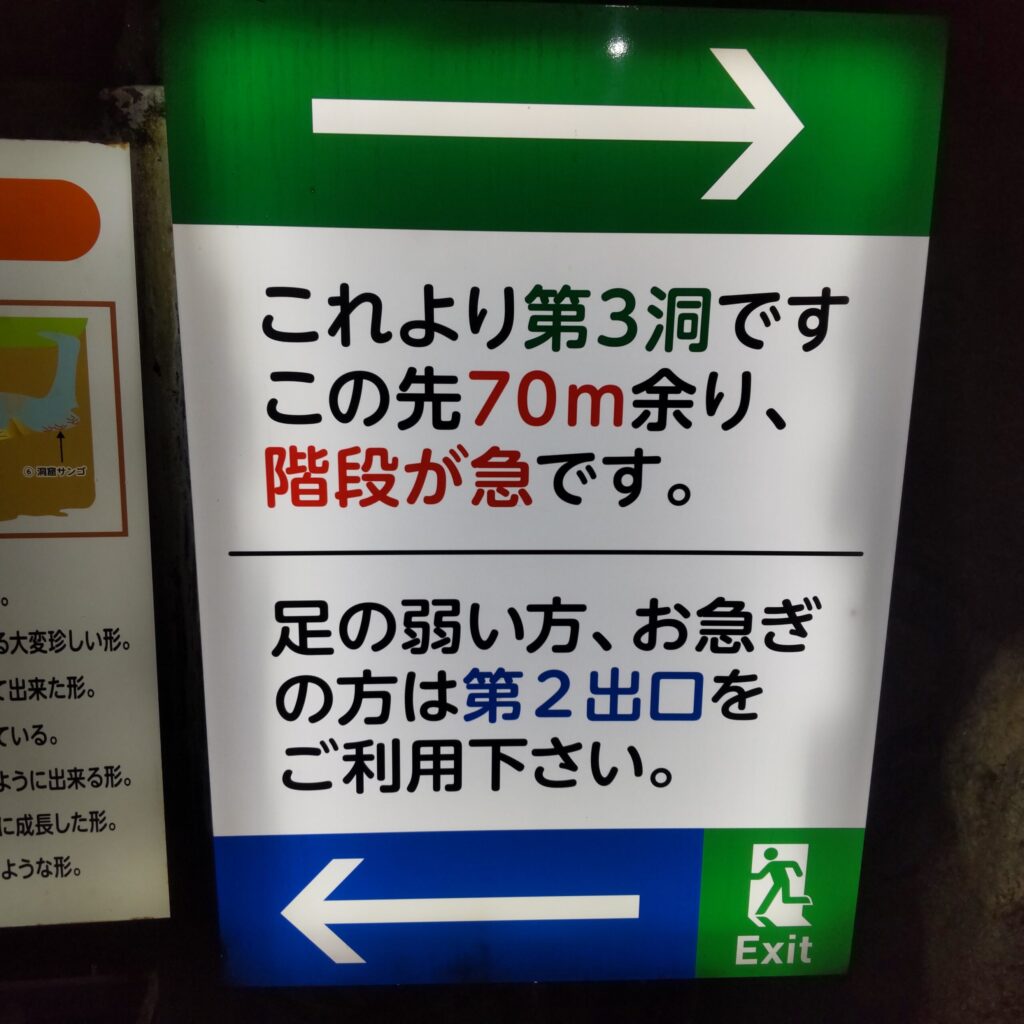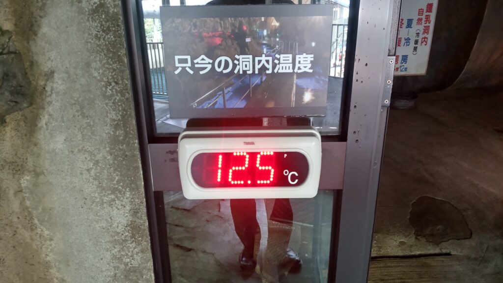 比較的大きな鍾乳洞で、入口はしっかりと整備されている感じ。場所によってはTHE・洞窟の入口っていうところもありますからね。洞内温度は12.5℃と入口付近からすでに涼しい空気が漂ってきます。